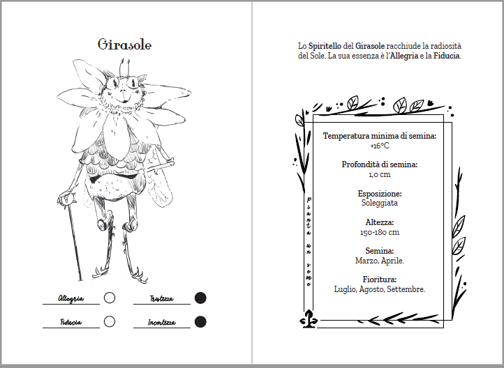 La scheda di uno Spiritello dei Fiori del Girasole e le indicazioni per potervene prendere cura realmente.
